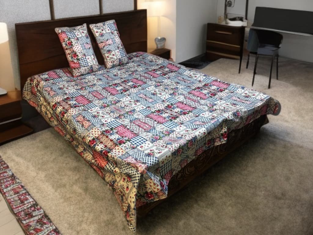 - ৬/৭ ফিট চাদরে সাইডে ১ফিট এবং ৭/৮ ফিট চাদরে সাইডে লম্বায় ২ফিটে জোড়া হবে