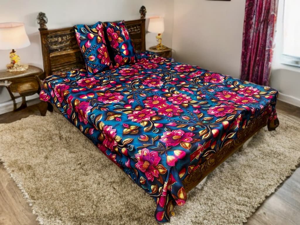 কটন ফেব্রিক্স 3D ৭/৮ফিট বালিশ কভার সহ ওয়াটারপ্রুফ বেডশীট